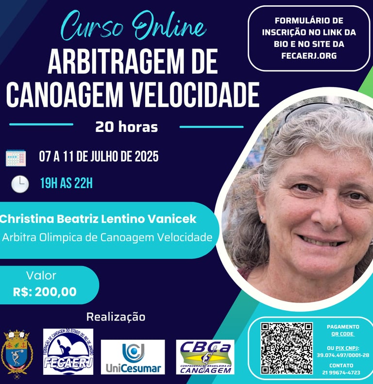 A Federação de Canoagem do Estado do Rio de Janeiro (FECAERJ), em parceria com a Confederação Brasileira de Canoagem (CBCA), a UniCesumar e o CEFAN – Centro de Educação Física Almirante Adalberto Nunes, anunciam a realização do Curso de Arbitragem em Canoagem Velocidade – Edição 2025, com o objetivo de capacitar novos profissionais para atuarem como árbitros em competições estaduais e nacionais da modalidade.